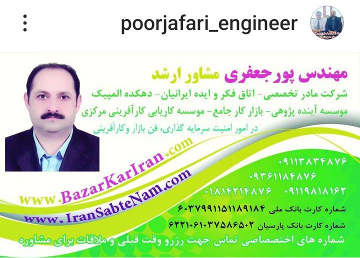 iranSABTnam.ir هلدینگ استادپورجعفری iran09113834876@Gmail.com مامشاورشمائیم 09113834876 instagram.com/Poorjafari_Engineer 🇮: -- در سایت #ایران ...